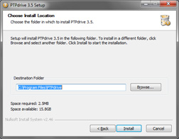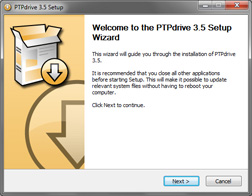- Run the 'PTPdrive.exe' installer as Administrator.